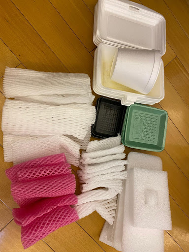 – clean styrofoam takeaway boxes, fruit wrappings, and all kinds of styrofoam