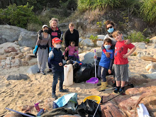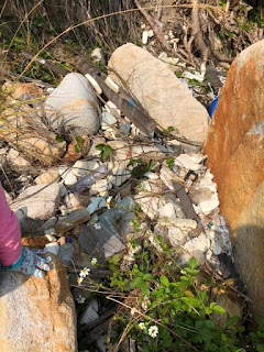 There are still large pockets of beach detritus hidden above the beach, behind the rocks!